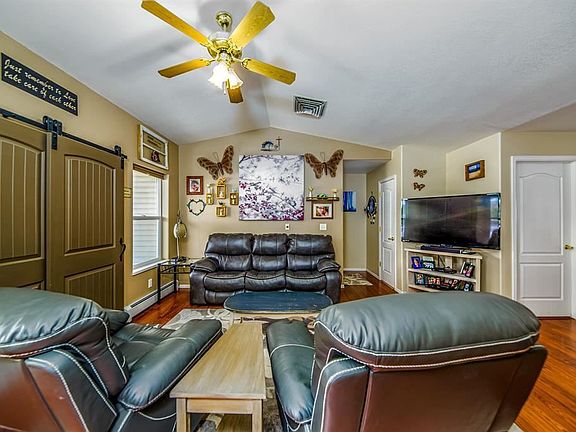 Come on down to see this neat and tidy home! Entry opens into open concept area. Large kitchen, lots of counter space and opens to dining area that looks out to the backyard. Plenty of room to stretch out in front of the cozy wood pellet stove. Primary bedroom is separated from secondary bedrooms and has ensuite bathroom with walk-in closet. Outside there is a place to park your RV and a pergola and patio on the North side that is shaded year round. Close to shopping, events, parks, recreation and healthcare in town. Short drive to skiing, boating, camping, and hiking in the Colorado mountains.