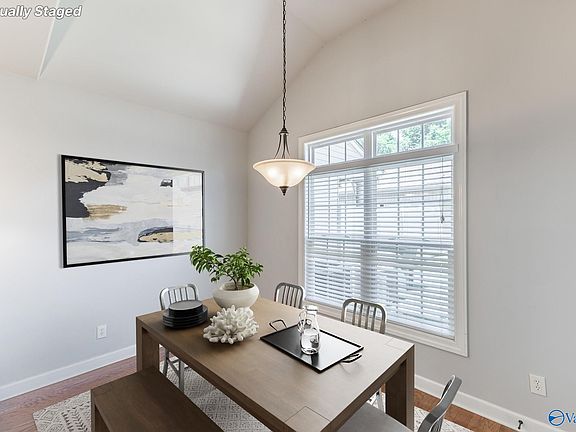 Beautiful townhouse located near shopping and restaurants. Also close to Redstone Arsenal. New Interior wall paint thru out entire house. Hardwood flooring on the main level. Master bedroom is located downstairs with adjoining bathroom featuring double vanity, separate shower and tub. Vaulted ceiling in the living room with wood burning fireplace. Covered patio overlooking private fenced backyard. Amenities include Clubhouse, pool and fitness area.