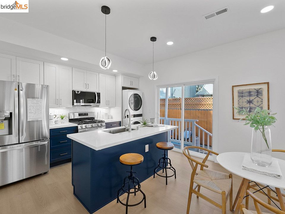 Conscious living comes with a small footprint at 1836 Russell Street. This fully remodeled home features two bedrooms, one bath and a quaint backyard with an automated gate offering one car driveway parking. Perfect for a young professional or a couple looking for their first home in beautiful South Berkeley, it features an open living floor plan with brand new windows, floors, bathroom and kitchen. The kitchen is equipped with LG stainless steel appliances, a five burner chef range, and a large quartz island that doubles as a dining space, giving you all the comforts of elevated Berkeley living in under 800sf. On top of having direct en suite access to the newly renovated bathroom, a beautiful double vanity with an adjustable smart LED lit mirror makes the space feel like true luxury. Both bedrooms have modular closets with multiple adjustable features that can be customized to your particular needs.