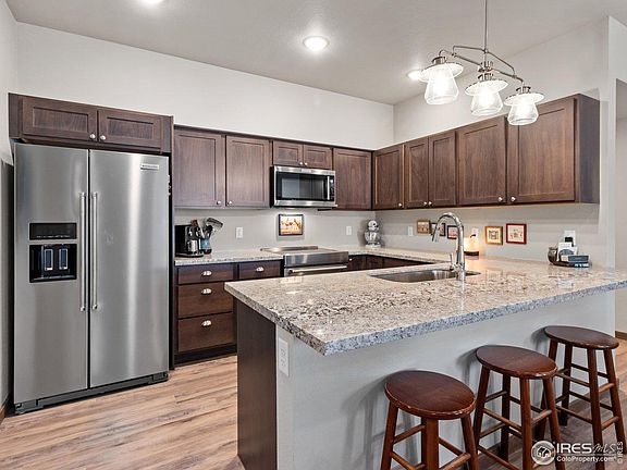 Available immediately. This condo will be rented UNFURNISHED. Stunning 3-bedroom, 2-bath condominium at Wildfire loaded with upgrades and special touches. You'll enjoy easy living with no stairs and high-quality finishes throughout this Westover built home. Interior features include central air conditioning, custom blinds, privacy drapes, luxury vinyl flooring, granite kitchen with top of the line stainless steel KitchenAid appliances, upgraded tile baths, upgraded fireplace with remote and fan, all in brand-new condition. Soft close cabinets and drawers throughout. Master bedroom has a large walk-in closet. There is a separate laundry room in the unit with washer and dryer. Ceiling fans throughout. The unit south-facing for lots of sun. Private patio with views to Twin Sisters! Lovely surrounding area with lots of sidewalks and gorgeous views of the Continental Divide and Long's Peak. Walking distance to Lake Estes. This unit has the largest assigned parking space in the heated garage as well as a secure oversized storage area, plus an assigned space outside. Estes Park's newest neighborhood is calling you! Pet policy is ONE small to medium sized dog allowed upon approval. Pet deposit required. Tenant must be employed a minimum of 30 hours per week in Estes Valley. 12 month minimum lease. Background check, credit check and references required. Owner pays HOA fees which includes sewer, trash and snow removal. Tenant responsible for all other utilities. Dogs allowed upon size and breed approval. No cats allowed. Pet Deposit required. No smoking of any kind is allowed in the entire development whether inside or outside on the patio. Includes vaping. Condo rented unfurnished and includes one garage parking space and large storage room (temperature controlled) as well as one dedicated outside parking space.