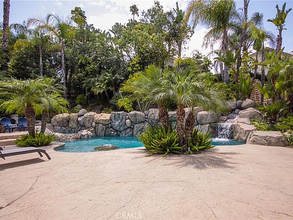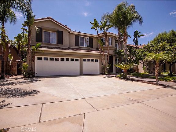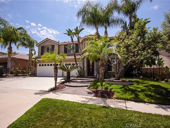 Welcome to resort-style living! This beautiful 5 bedroom, 4 bathroom, 3,446 sq. ft. home is located in the beautiful golf course community of Eagle Glen. Every inch of this 10,019 sq. ft. lot is filled with lush, tropical landscape. There is a beautiful rock pool & spa with a Shamu shelf for lounging, a waterfall with a grotto for a fun swimming experience, and a new pool heater and pumps. On those cool nights, you can relax by a gas firepit. Entertain your family and friends with a built-in BBQ with a top-of-the-line 42-inch Alfresco grill with sear zone, refrigerator, and lots of storage. The yard is filled with landscape lighting for a magical nighttime experience. The oversized patio has a ceiling fan and plenty of space to entertain family and friends any time of the year! The home's interior has been freshly painted with neutral paint to work with any decorating style. New can lighting throughout and lots of room to bring the party inside. The kitchen has an oversized island with room for barstools, new quartz countertops, white picket backsplash, wine fridge, and newer GE Profile stainless steel appliances. The attached super family room has an updated fireplace with the same white picket tile. Upstairs the large bonus room has plenty of room for a pool table and still room for additional seating for entertaining or a teen retreat. The large master bath has dual sinks and dual master walk-in closets. This amazing home also has a 3-car garage with plenty of cabinets. Additional features of the home include a security system, whole house fan, new blinds throughout, and solar panels which provide low monthly electric costs all year long. The low property tax rate of 1.11% is a bonus! Eagle Glen is an extraordinary community with an 18-hole golf course, a beautiful clubhouse with a restaurant and lounge, a pro golf shop, playgrounds, parks, and is close to shopping and entertainment.