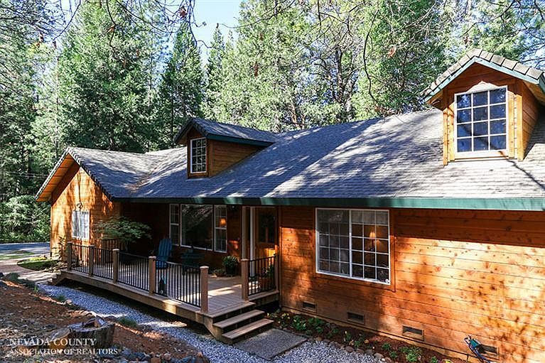 Lovely Park like setting on paved road. Gorgeous mixture of trees and easy care landscaping. Cedar sided exterior, Newer composite decking w/wrought iron railings Immaculate one story home w/ Wood flooring, Vaulted Ceilings Spacious rooms with many large windows. Great room Concept for easy entertaining plus a large bonus/family room that can be used for office, Artist studio or ?? Walk in pantry in Kitchen w/ abundance of cabinetry. Large Master suite with sitting area and slider to outside deck. You will love the recently remodeled Master bath with radiant heat Tile flooring, Large Tiled Shower, Granite counters, and custom cabinets. An Extra bonus is an 800 sf storage area under the home for easy future expansion. Property bordered by Rock Creek on one side. Only 4 mi from down town Nevada City and near the Yuba River too. Expect to fall in love!