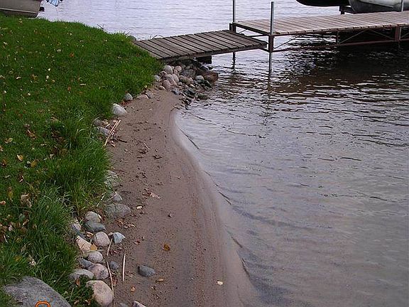 Very nice Pokegama Lake home on an outstanding well landscaped lot with perfect elevation. New updates include: furnace, hot water heater, floor covering, fireplace, bathroom, siding, windows, deck, patio, and several landscape projects. Plush lawn with an irrigation system, 2 garages, and lakeside storage shed. Comfortable lakeside patio with fire pit connects the house to an authentic Finnish sauna. Great fishing from the dock and nice sandy shoreline.