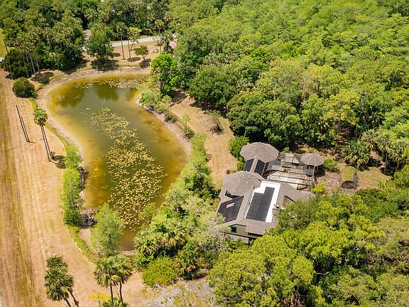 PLENTY OF LAND TO BUILD ON!! RARE OPPORTUNITY!!! This home is for an Investor or someone with a creative eye. This property offers 6.13 acres located in a private gated equestrian community with low HOA fees i.e. $70 a month. The home needs updating and renovations. It's your choice. A Newer roof 2022 and solar panels are 2022. Tons of space to build a barn or separate dwelling. Great Location close to shopping, dining, entertainment and approx. 15 mins from the beach. Next to I95 and the FL Turnpike Serious buyers only
