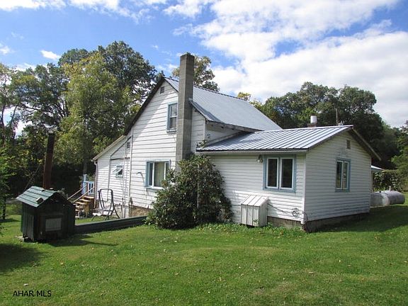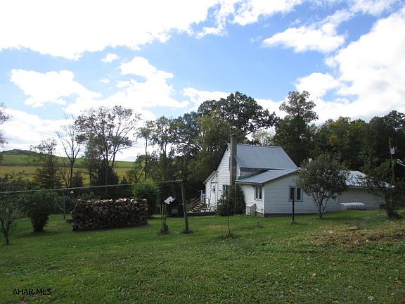 House on 4 acres that sits among farms; no visible neighbors. Close to 2 sections of State Game Lands - great for a hunting cabin. Two vehicle carport and single detached garage. Large front porch/deck. Barn - seller previously had horses. Surrounded by large farms. Nice views from back yard. From porch you enter into a foyer area with full bath and laundry adjacent. Large living room with open stairs to the 2nd floor bedroom. Large Bedroom of the LR - has single closet plus walk-in-closet. Kitchen and dining area are one large room with separate areas. Also has a bonus room at back of attached garage currently used as reloading room. Oil forced air plus outside wood furnace. Newer windows and some siding. Pear, apple, peach, walnut trees. Blueberries plus grape arbor. Beautiful area!
