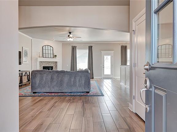 Nearly new! Come check out this lovely modern farmhouse home in the amazing Landrun addition. This 1/2 acre lot leaves tons of room for your design on this unique back yard. This spacious home is perfect for a big family, with 4 bedrooms, 3 full bathrooms and a study. The home features an open concept split plan, a beautiful shiplap fireplace, wood tile throughout the main area and a covered porch and back patio. Gorgeous curb appeal, tons of natural light and upgraded light fixtures throughout. The kitchen features a gas range, stainless steel appliances, beautiful herringbone backsplash and a walk-in pantry. Set up a showing today, and make this home yours!