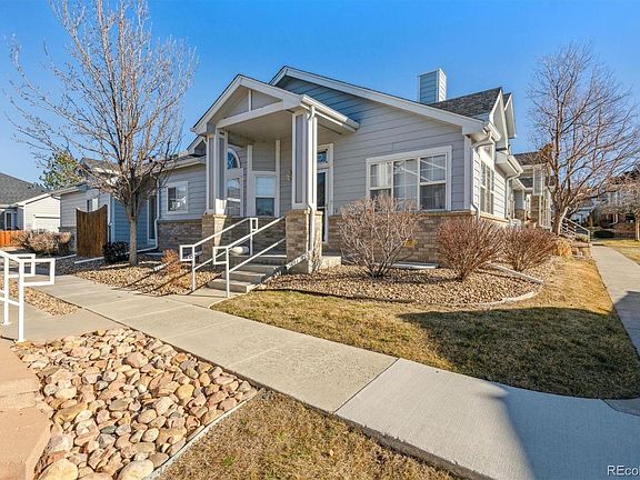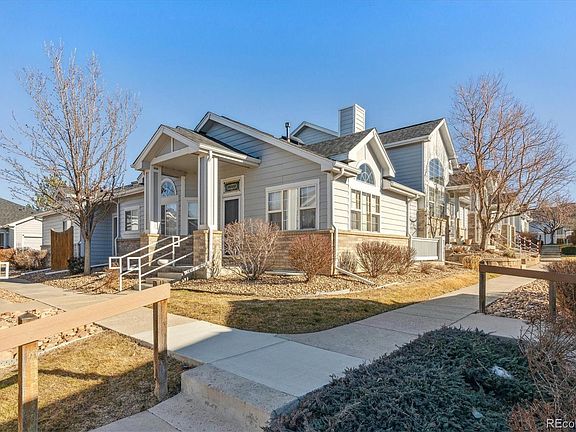 This exceptional end unit offers the perfect blend of comfort and style. The open floor plan with neutral paint throughout features a spacious great room, soaring high ceilings, 2-way fireplace and large picture windows, filling the space with natural light. The dining room is ideal for formal or informal entertaining, while the kitchen boasts an abundance of cabinetry, ample countertop space, and a pantry. A cozy breakfast nook and a private enclosed patio provide additional living space, complemented by newer wood-like tile flooring throughout.The secondary bedroom offers access to an outdoor patio and is conveniently adjacent to a full bath with newer wood-like tile flooring. The vaulted owner's suite is a true retreat, featuring a 2-way fireplace and private patio access with serene views of the park and open space. The lovely ensuite bath includes a skylight, large vanity area and a decorative raised shelf, adding to the suite's appeal. The laundry room enchanced with a side-by-side washer and dryer leads to the attached two-car garage and is accented with the same stylish wood-like tile. The enormous unfinished basement presents endless possibilities, offering ample space for customization to suit your vision. Perfectly situated in a prime location, this property is just minutes away from the upscale Southlands Mall, offering a variety of dining options, retail shopping, ice skating rink, movie theaters. Denver International Airport, major highway systems, recreational water reservoirs, parks and trails featuring hiking and biking, nearby golf courses and dog parks are additional bonuses. With an abundance of amenities right at your doorstep and substantial guest parking within the community, this charming home truly embodies the epitome of a quiet life-style and location to match. Additional features include new roof (2024), dishwasher (2023) stove (2022) furnace (2023) water heater (2016) wood like tile (2019). Carpets cleaned 12/24. WELCOME HOME!!