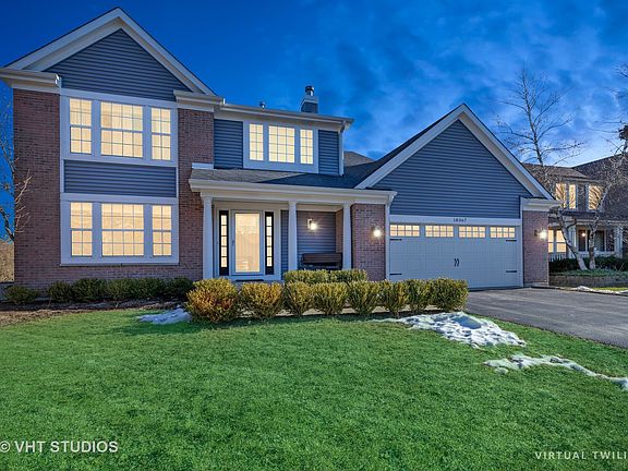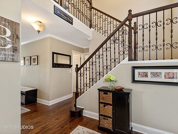 Absolutely beautiful 2-story colonial with 3-car tandem garage has everything you need to make your life comfortable. With over $100,000 in improvements and upgrades, this home is tailor-made for anyone looking for true quality, comfort and serenity. It has a desirable floor plan that is open & airy with lots of windows that provide plenty of natural light to shine through. Lovely hardwood floors flow throughout the main level and add an elegant touch. The kitchen opens to the family room and features gorgeous custom wood cabinetry with glass inserts and granite counters, marble tile backsplash, center island with extended countertop, stainless appliances, and relaxing views of the pond. The family room is accented by a wood burning/gas start fireplace and a large window that overlooks the yard and pond. The generous sized master bedroom has a large walk-in closet with organizers and leads to a fabulous luxury bath with vanity, granite counters, duo sinks, separate shower, impressive tile work and upgraded fixtures. 1st floor laundry room has tons of cabinets with granite counter and sink that are great for storage. Samsung front load washer and dryer is included. The full basement is finished perfectly and offers a huge rec room, office area, wet bar with Maple cabinets and granite countertop, crown molding, and recessed and pendant lighting. The back yard is a real retreat and a great place to relax after a long day of work. It has a huge 16'x35' maintenance-free deck with Sunsetter awning and a serene and peaceful view of the pond. Other improvements of this quality home include: New siding (2016), Newer furnace (2016), crown molding in all rooms, ceiling fans and black out shades in all bedrooms, updated baths, custom blinds and shades, sump pump replaced (2022) and so much more! If you are looking for an updated home that has charm, character and a floor plan that is perfect for entertaining family and friends, this is it!