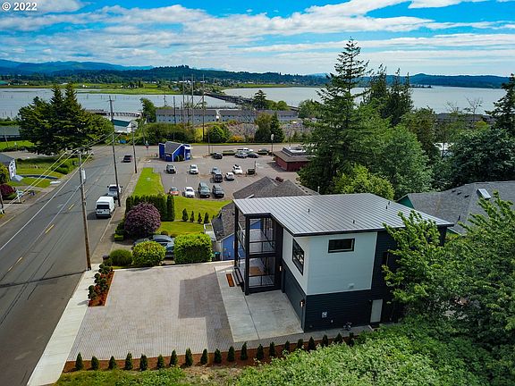 Contemporary Modern design. This architectural masterpiece is located in Astoria's desirable South Slope neighborhood w/ Youngs Bay & mountain views. 3 bed/2 1/2 baths + finished basement. Professionally designed galley kitchen. UV light water vapor fireplace. Primary bedroom en suite w/ covered view deck, luxurious spa inspired bathroom. Electric car charger. Hook up for whole house generator. Hi efficiency furnace w/ google nest thermostat. See Features List under documents.