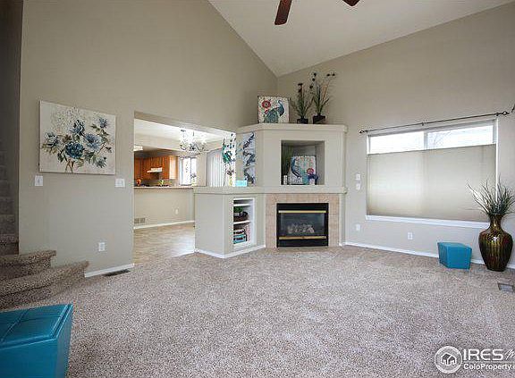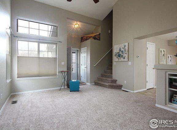 Bright, clean 2-story in wonderful Southeast Ft. Collins! Main floor has vaulted ceiling and gas fireplace in living room, and opens to dining room and large kitchen. 3 Bedrooms, all upstairs, primary suite is spacious w/large walk-in closet.Unfinished basement, ready for play or storage. Backyard has a nice patio and garden spot right by the back sliding door off the dining room. Great cul-de-sac location, convenient to Harmony corridor and I-25!