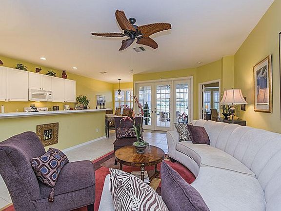 Beautifully decorated 2 bedroom, 2 bath villa with views of a lake and a public golf course. Combination living room features a sectional sofa with clean lines, open spacious kitchen, dining area. For your enjoyment upon entering the community to the right you'll have access to the golf course. The villa is approximately 1,732 square feet. The den has a pull-out sofa and large flat screen TV. Primary has a king bed with a queen bed in the guest bedroom. The large outdoor lanai opens from the living room with an umbrella table, four chairs with chase lounge. The clubhouse amenities includes tennis courts, swimming pool. Enjoy this beautiful community. Available Annually at $3000 per month and Seasonally at $6000 Information contained herein deemed reliable but not guaranteed Seasonal - Owner pays Cable, Internet, Water, Electric (Cap $100) Annual - Tenant pays utilities, First, Last and Security plus background and credit check.