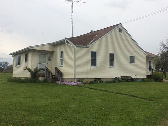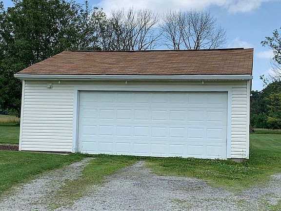 3 Bedrooms (master has walk-in closet and 1/2 bath), 1 1/2 baths, living room, kitchen with: pantry, refrigerator, gas stove and dishwasher. The dining room has a walnut ceiling and trim. Beautiful sunroom with pine, cathedral ceiling. It has a full basement with washer & dryer and stair access to attic for storage. It has a detached 2 car garage and a 1 1/2 car garage and a storage shed. Also, it has a nice stamped patio. Located on 2.15 acres with 2 English walnut trees, 1 apple tree and a grape arbor in the Madison school district.