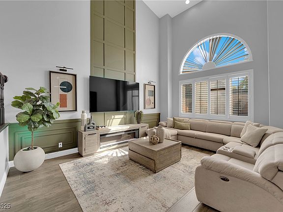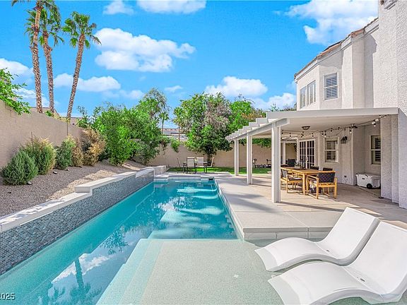 STUNNING HOUSE HENDERSON WITH POOL - SOLAR PANELS PAID OFF- 4-bedroom, 3-bath residence with HEATED POOL. It’s Offering a blend of unparalleled luxury, comfort, and modern elegance! This two-story gem boasts manicured landscaping & a 3-car garage. Discover wood-look tile flooring on the main level, immaculate kitchen has quartz counters, decorative lighting, SS appliances, a walk-in pantry, a breakfast bar, a stylish backsplash, white cabinets, & a cozy breakfast nook with French doors to your private backyard. Enjoy the romantic owner's suite with vaulted ceilings, a huge walk-in closet, a sunny bay window, & a luxurious bathroom with dual sinks & a separate shower & tub. You will fall in love with your beautifully landscaped backyard boasting a blue pool with water features, a covered patio, & artificial turf. It truly seems like a perfect place to call home! If you're considering showcasing this property or need more information about it, feel free to ask!