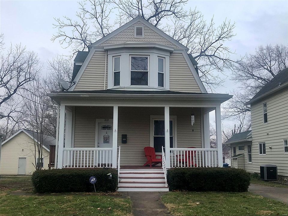 Beautiful home in Upper Alton within walking distance to the SIUE Dental School. Inviting covered front porch welcomes you into this historic beauty. Hardwood floors lead you through the foyer into the living room, dining room, and to the kitchen. Spacious rooms and convenient flow. All kitchen and laundry appliances stay. The staircase leads up to 3 bedrooms and the full bath. Full basement with plenty of storage space. There is a 1-car garage that serves more as a shed, and an oversized 2-car garage with workshop area. New electric was run from house to the detached, oversized garage in 2020. New water heater. Fresh paint and new blinds.