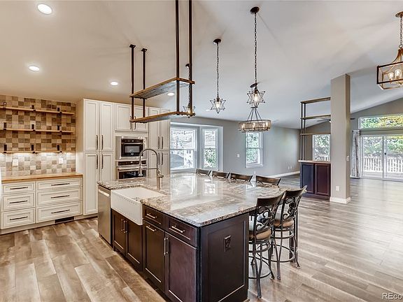 Welcome to the coveted and highly sought after Red Hawk neighborhood, a wonderful and exciting place to make home! On a cul-de-sac nestled in the hills near the Red Hawk Ridge Golf Course, the location couldn't be better! Just 1.3 miles to I-25 makes commuting easy and the area is teeming with new growth and amenities galore. Colorado Springs is only 34 miles south and the Denver metro area is under 10 miles to the north. Old town Castle Rock is just 1.5 miles away where you can enjoy world class shopping, dining and small town charm. Go hiking at the Ridgeline Open Space or walk to the MAC center for endless entertainment for the whole family. Only 1.5 miles to the new Adventist Hospital in the Meadows. This rare ranch style home is truly special because it has a fabulous interior to match its great location. Starting with the recently remodeled gourmet kitchen, which is absolutely stunning with an amalgamation of complementary materials culminating in a gorgeous and unique style all its own. Reclaimed railcar wood countertops (like butcher block but much prettier) with a massive granite island, farmhouse sink, stainless over-the-range hood vent, wine cooler, 5-burner gas range, 4 ovens, generous cabinet storage and much more. If you love to entertain, cook and bake for guests, this is the home for you! The floor plan has been opened up to reveal a vast vaulted great room consisting of kitchen, dining and living rooms combined with a cozy fireplace and access to a spacious and private back deck. Huge main floor master bedroom with 5-piece bath. Nice finished basement with bathroom, family room, and additional flex areas. Front yard has an extended patio with beautiful low water landscaping. Recent upgrades include newer roof, windows and patio door, exterior paint, carpeting, water heater. Information contained in this listing may be reliable but is not guaranteed. The buyer must conduct their own due diligence and verify all information to their satisfaction.