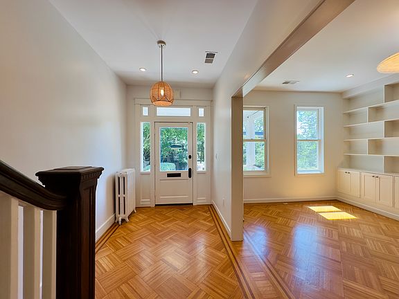 Fully finished basementOversized doorYear-round climate controlLarge fourth bedroomWoodburning fireplaceExposed brickParquet floors