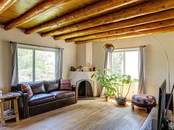 Fantastic 2 bedroom, 1 bath Stamm home in Casa Alegre! This wonderful home has vigas throughout and beautiful wood floors in the living room and bedrooms. The kitchen and bath have tile. The whole home has in-floor radiant heat. The living room is light and bright due to the large windows and has a wood burning kiva fireplace. The kitchen has newer stainless steel appliances, granite tile counters, and beautiful pine cabinets with custom glass inserts The 311 +/- Sq. Ft. garage has been mostly converted and can become additional living space if desired. The home has a large private walled back yard and a fenced front yard with lots of shade. Great location - close to everything. Schedule a showing today!