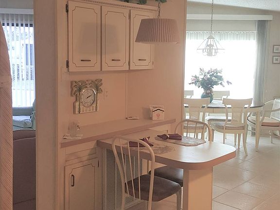 Furnished 2/2 in desirable Landmark Naples, a gated 55 and up age restricted community with many amenities such as two heated swimming pools, two beautiful clubhouses for social gatherings and meetings, cards, reading, arts and crafts, billiards and more. There are bocce courts and shuffleboard courts. If you want to keep busy, this is the place to choose! Lot rent is $688 per month which includes yard maintenance, garbage pickup, sewer, and use of all amenities. Homeowner pays for their own electric and water and cable. Two small pets are permitted per home. This lovely home has light colored ceramic tile on the diagonal throughout and high vaulted ceilings which all provide bright, open living space. Some of the many features include a spacious open kitchen with lots of counter space, cupboards and drawers, a large pantry and built in casual counter with two chairs. The living room has a queen size sleeper sofa, love seat, two casual and comfy chairs, glass top coffee table and a double door slider that opens to the front lanai. The adjacent dining room has a large oval table with six chairs, a beautiful glass chandelier hanging over it, and a built in hutch with cupboards and drawers below and shelves behind glass doors overhead. Down the hall is the large master suite with queen size bed and wicker headboard, love seat, wicker dresser, two wicker night stands, and a large walk in closet. The private master bathroom has a vanity with large mirror over it, linen closet, and spacious walk in shower with built in seat, The guest bedroom has plenty of room for guests to enjoy with two twin beds, dresser, desk, and a walk in closet. Across the hall is the main/guest bathroom with bright cheery colors, vanity, shower/tub combination, and a very large closet which can be converted to housing a washer and dryer - hookups are already there! Home is being sold furnished as shown and turnkey! Pack your bags and move right in! The long covered carport has plenty of room for three cars if desired. This home is situated off the main road with very little traffic and noise to contend to. Call for more information and to schedule an appointment to personally tour the home. Priced very competitively in this great community!