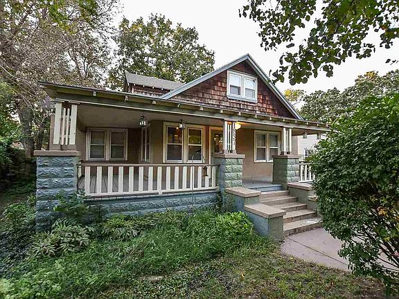 One word to describe this house- Potential! This bungalow home, built in 1925, has many original features that give it lots of character! The partially wrapped porch greets you as you come up to the front door- its the perfect place to relax in the shade at the end of the day. Walk through the original front door and into the large living room where you will find built in shelving with the original leaded glass in the doors. Notice the high ceilings, gorgeous woodwork, and original art deco heating and air vents- they don't make them like that anymore! The dining room is on the other side of the built ins- large enough to hold the whole family or entertain guests, yet cozy enough for quiet meals at home. The kitchen has an alcove that is great for storage, and there is a mud room off the back door. In the bathroom you will find a unique stained glass window above the bathtub. The three bedrooms round out the first floor. The upper level has 2 extra rooms and a half bath. The bedroom at the front of the home has a sloped ceiling, and there is a sunroom at the back that could have many different uses. The upstairs holds a fun secret room and hallway that joins the bedroom and sunroom. It would be great for storage, or could be a fun place for little ones to play. Back downstairs, the cellar isn't just for laundry! It is larger than it first looks. Lots of room for storage, or create a work space for crafts or a hobby, lots of options! The backyard is fully fenced and is very deep, with lots of shade from the mature trees. There is a 2 car detached garage located there as well. Appliances, furnishings, and decor stay with the home. Walking distance to the elementary school, middle school and North High are very close. All of this potential is priced to reflect the condition of the home which is being sold in as is/where is condition. Conventional or cash offers only please.