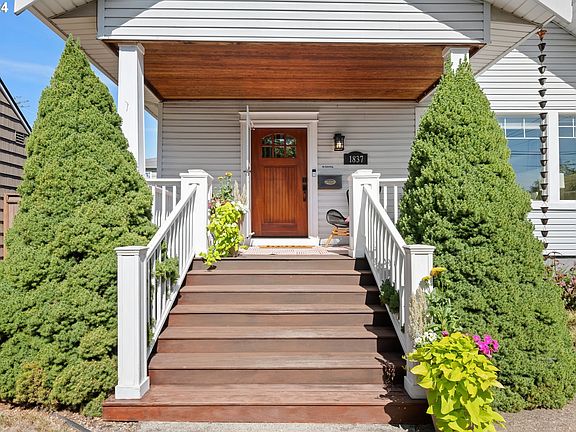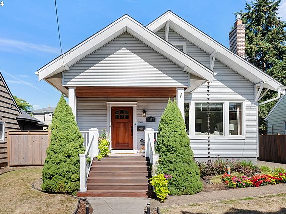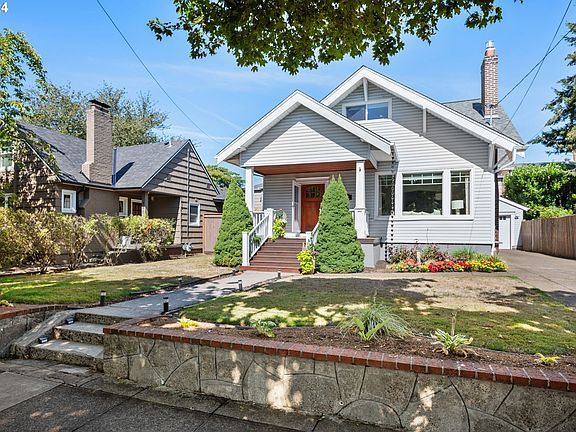 Outstanding 1914 Overlook neighborhood Craftsman! Artistically updated for today's living with original details & modern conveniences. Gracious spaces with hardwood and fir floors, period millwork including box beamed ceilings and built-ins enhanced with updated surfaces and efficient modern systems including heated bath and kitchen floors. Large front porch leads to formal entry, living room with gas fireplace, dining room with box beam ceilings, 2 bedrooms and updated bath with large walk-in shower. Updated gourmet kitchen w/stainless appliances, dual fuel range and tons of cabinet and counter space. Upper level has 2 large bedrooms with tons of closet and storage space and updated hall bath. Plenty of space to spread out with finished lower level with new flooring, family room, bedroom, bonus space, 3rd full bath and laundry room offering multigenerational living or even ADU potential. With a new furnace, efficient double paned windows, updated electrical, central A/C, and mini-split all of the heavy lifting has been done. Plenty of storage space plus newer garage. Fenced yard with watering system and back patio for entertaining & lounging - plumbed for gas grill. Great location & Overlook neighborhood! Offering an array of restaurants, coffee shops, bars and shops within blocks. Plus parks, outdoor recreation and outstanding views and sunsets from Overlook Bluff. Near the Interstate MAX line and I-5 freeway just minutes to downtown and destinations beyond. Walk Score 78 and Bike Score 100. [Home Energy Score = 3. HES Report at https://rpt.greenbuildingregistry.com/hes/OR10197909]