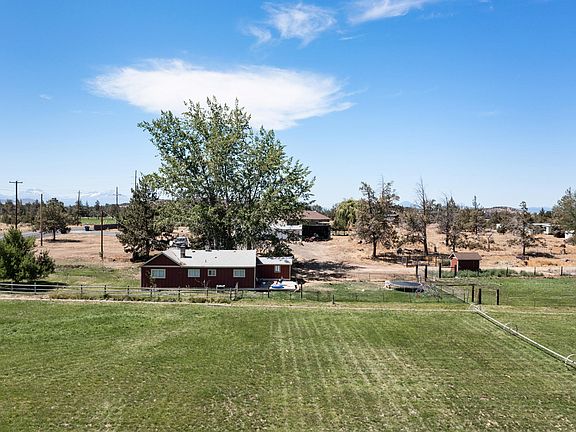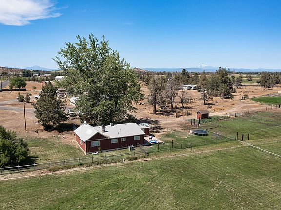 Priced to sell under market value! Stick built farmhouse situated on 4.68 acres with 4 acres of irrigated water rights. Horse property with impeccable views of the desirable Smith Rock right out your back door. New exterior and interior paint on this 1,540 sqft home with 3 beds 2 baths, updated windows, & electric heat pump with A/C. Surrounded by green fields this property is set up for animals and farm use. Fully fenced hay field yielding two cuts per year, separate fenced pasture area for animals, gardening, and a fenced in backyard. Well house, lean-to shed, and large white shop/storage building. Located just outside of Redmond and only 18 miles from Prineville, 17 miles to Bend. Enjoy sunsets on the back deck overlooking the renown Smith Rock State Park that is just minutes away, the view is truly stunning. Bring your 4-H animals and organic garden dreams. Plenty of room for toys and a barn. Wheel line included, septic pumped in July, HVAC serviced in October.