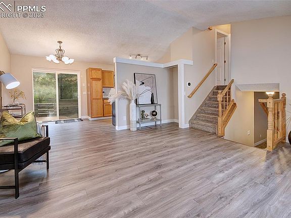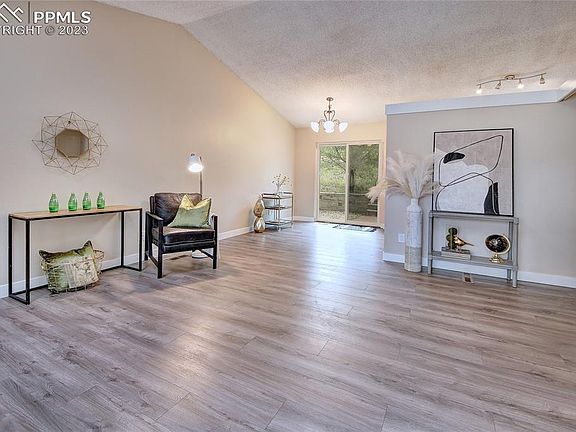 Do not miss this recently updated three-bedroom, two-bath home featuring luxury vinyl laminate flooring, new paint, vaulted ceilings, wood burning fireplace, a Very private setting, backs to college property and open space. Air conditioning~Large yard~Views of bluffs and rock formations from the front. No HOA~Plenty of off-street parking~Walking distance to UCCS~Close to shopping~Solid rental history