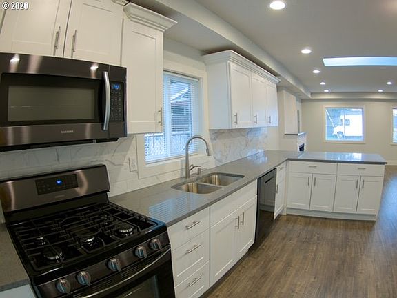 Completely remodeled, ready to move in ranch on a huge private lot! Lots of space in front or in the backyard for parking, RV or extra vehicles! New roof, siding, windows, floors, kitchen and bathrooms! Quartz countertops and SS appliance! Heated floors in the main bathroom! New heating, electrical and plumbing systems. Make an office/bedroom in the partially finished basement with the separate entrance. Come fall in love with this house and make it your home! [Home Energy Score = 9. HES Report at https://rpt.greenbuildingregistry.com/hes/OR10100975]