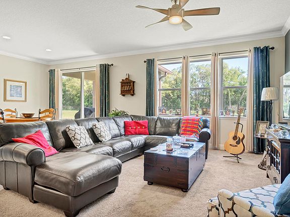 New Price! Gotta see this one. High energy efficiency-low electric bills.Beautiful 4 bedroom better than new Claypool plan. Ready to move in with no rear neighbors. You'll love the front porch with columns for charm. Step into flex room/dining room, all with views to backyard, then very nice open great room and gorgeous kitchen w/ 42'' mocha cabinets, granite counters & great prep island. Breakfast nook opens to lanai w/ views of back. Master suite is spacious w/ tray ceiling, large shower bath, double vanities, & huge closet. Upstairs you will enjoy the loft/game room w/ tray ceiling-perfect for family games/ homework. 3 additional spacious bedrooms and double vanity bath. Trillium is 5-10 minutes to the Suncoast, soccer & county ball field park, well maintained and one of Hernando
