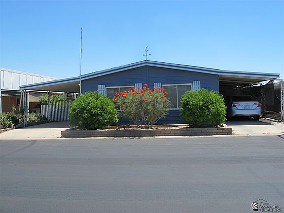 Nice pit set doublewide in 55+ park where you own the land. 3 bedrooms, two 3/4 baths with walk-in showers. Split floor plan. Separate living and family room. New carpet in the master bedroom. Comes with a few furnishings. Complete with washer/dryer and two fridges, newer dual pane windows, shutters on bedroom windows. Carport with sun shades and nice sized backyard with storage shed. Covered porch in front. Low HOA of $488 year. Includes use of pool, clubhouse and all the park events.