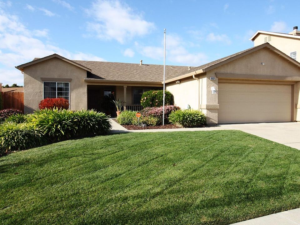 Wonderfully maintained single-story home in gorgeous neighborhood, beautiful curb appeal! Very quiet neighborhood, but also easy access to Highway 101 and shopping. Features an impressive size lot with house set far back from street. Beautiful low-maintenance landscaping front and back on automatic irrigation. Silestone counters in spacious kitchen, with a new built-in microwave and breakfast bar. Laminate flooring in kitchen, dining room, entry, and hallway. Feel safe in your new home with an alarm system