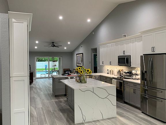 Large living areas,beautiful backyard with custom pool. Brand new kitchen and flooring throughout the entire house. Roof is fairly new. Brand new paint job inside and out. Hurricane windows installed.