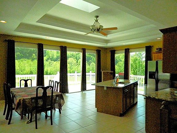 FROM THE ELEGANT ENTRANCE TO THE RIVER FRONT LAND, THIS HOME IS A SOUTHERN CHARMER. WITH MORE THAN 3,000 SQUARE FEET, THE PROPERTY SERVES AS A WONDERFUL RETREAT, WHETHER VACATIONING OR MAKING IT A PERMANENT HOME. THE ARCHITECTURAL DETAILS ARE ABUNDANT FROM THE CROWN MOULDING & TRAY CEILINGS TO THE EXTERIOR STONE ITSELF. WITH AN OPEN FLOOR PLAN AND WALLS OF GLASS THE OUTDOORS MOVE INSIDE AND ALLOW FOR GORGEOUS MOUNTAIN VIEWS. THE LIVING ROOM, WITH HARDWOOD FLOORS & DEFINITIVE WINDOW DETAIL, IS A WONDERFUL PLACE TO ENTERTAIN OR CURL UP WITH A GOOD BOOK BY THE FIREPLACE. THE MASTER BEDROOM HAS A LARGE GLASS-ENCLOSED SHOWER & STYLISH VANITY, AND IS A GREAT PLACE TO RELAX FOR THE EVENING. GRANITE COUNTER TOPS & OAK KITCHEN CABINETS SHOWCASE THE KITCHEN, ALONG WITH ROOM TO DINE & ACCESS TO THE EXTERIOR DECK. WHILE THE MAJORITY OF LIVING AREA IS ON THE MAIN FLOOR, THE DOWNSTAIRS AREA, WITH ITS OWN FULL BATH IS A BLANK SLATE, WAITING TO BE PATTERNED BY THE NEW OWNERS.