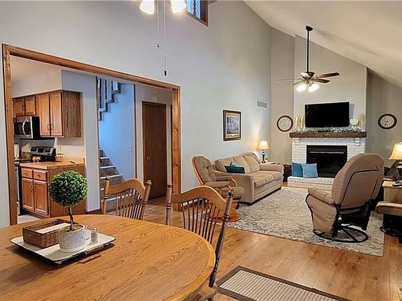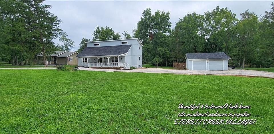 This beautiful 4 bdrm 2 bath home with 2 car garage, sits on almost an acre in popular STERETT CREEK VILLAGE! Beautiful vaulted ceilings & fireplace in this lovely living room. Spacious dining area open to the living room. Kitchen includes appliances and plenty of storage. Two nice size bedrooms on the main, one bedroom includes large walk-in closet. Main floor bathroom with walk-in shower. Just off the kitchen is an expansive deck for entertaining after a long day on the lake. Upper level boasts of two large bedrooms, one with walk-in closet, full bath & laundry. Detached double car garage will hold boat & all those lake toys. There is plenty of room for multiple families to spend time at the lake. Come and enjoy the community swimming pool, shelter house for community events, full access to STERETT CREEK MARINA & THE MINNOW BAR. HURRY! The homes in this neighborhood do not last!!