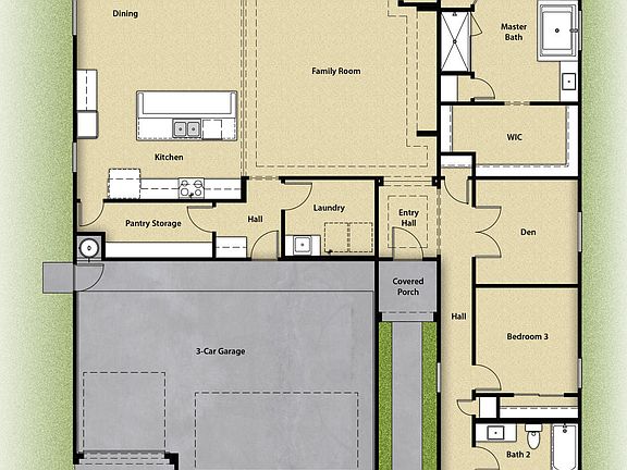 Built to accommodate families of all sizes, the Hawley plan offers abundant space and storage options with four bedrooms, an open family room, secluded den, impressive dining area and a covered outdoor living space. Homeowners will fall in love with the spacious master bedroom, large enough to accommodate your entire bedroom suite. The beautifully designed master bathroom features a his and hears vanity, a linen closet, a separate shower and soaker tub. Additionally, a walk-in closet provides enough room to store your entire wardrobe. Stainless-steel Whirlpool(r) kitchen appliances, including the refrigerator, gorgeous granite countertops, 42'' upper wood cabinets, gorgeous flooring and professionally designed front yard landscaping are a sampling of the upgrades you will find in the Hawley.