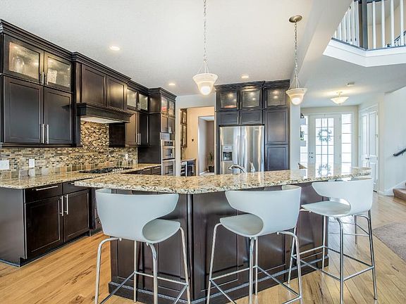 This stunning home is located in the quaint development of Madeline Woods. Open floor plan splashed with abundant natural light. Gourmet kitchen offers espresso maple cabinets, granite, stainless steel appliances, tiered center island, exterior vented hood, gas cook top, hickory flooring PLUS walk-in pantry and adjacent butler bar with wine chiller. Formal dining or living room. Flex room with French doors makes great toyroom or office. Spacious loft. 4 bedrooms on one level! Lower level awaiting your finishing touch for nearly 4100 sq ft!