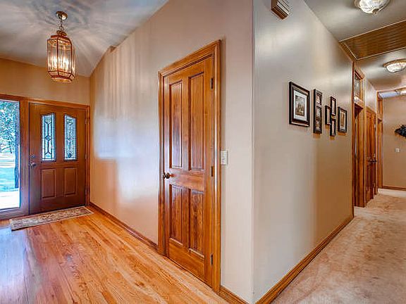 Custom brick rancher on 5 treed acres, easy to get to, zoned for horses, completely private and D-38 schools! This 5 bedroom 5 bathroom home features: totally remodeled kitchen with slab granite counters and stainless appliances wet bar in huge basement, huge 4 car oversized garage plus a 2 car detached oversized garage/outbuilding with tons of storage, pre-wiring for hot tub, huge outdoor covered patio with complete privacy, two 1500 gallon septic tanks, sprinkler system, lot has been completely fire mitigated, newer 50 yr roof (2010), only one owner, walk in pantry with extra freezer, walk out master, baseboard heating resulting in low utility bills, whole house fan, tons of attic storage and a brand new well pump. Taxes are only $2500/yr.