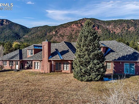 If you are looking for that new home with virtually every amenity you could ever want, then this exceptional, versatile, and beautifully designed Brick Ranch, located within one of Colorado Springs premiere areas, the town of Monument, is the absolute right choice. Nestled on a scenic lot, with amazing views in all directions, this 6262 Square foot, 5 Bedroom, 5 Bathroom beauty will satisfy the needs of any type of family structure, from a couple who just love plenty of room, to the large or extended family who require a secondary suite. As you approach the home, and take in the amazing views, you already sense the feeling of the open range as you cross the 3.0 acres to the main house. A 4-car attached oversized Garage, garden areas, walkways, and a large patio dot the landscape. Entering the home, you find large and beautifully arranged rooms, to include a Living room with brick surrounded fireplace, Formal Dining room, Recreation Room, Offices, and large open Chef’s Kitchen with Corian countertops, Sub-Zero Refrigerator, a Breakfast Bar, and Pantry. Beautiful hardwood flooring throughout, lofty ceilings with crown moldings and three large, bedroom suites with full baths on the main level. The Master Bedroom with its’ adjoining fully equipped Master Bathroom and his and hers Walk-in closet is second to none. The Master Bedroom also boasts a walk-out to the back patio The remaining four bedrooms and three bathrooms are spacious and provide an excellent view of the surrounding landscapes. There are also two spacious offices with built-in features, a bookcase, and a lovely, picturesque fireplace. For entertaining and relaxation there you have a 22 x 13 Rec Room, plus a Great Room (24 x 18) and an 11 x 15 Buffet Area. Monument is conveniently located, and just minutes from I-25 and a short drive to downtown Colorado Springs and other amenities. Call to view this extraordinary property TODAY, while it is still available