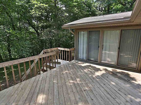 WOW! You don't see properties like this too often! This one owner gem is located in East Dubuque just 5 minutes from the bridge. The home was built in 1992 and is nestled in the woods of an 8.1 acre parcel! The main floor offers 2 bedrooms, 1.5 bathrooms and offers 1,344 SqFt. Lots of windows and the perfect 4 seasons room! The lower level is finished. Half of which is family room w/ another full bathroom and the other half is a built-in/under heated 2 car garage. Other features of this home are: wrap around 440 SqFt deck, main floor laundry, kal-kote finished walls, fireplace and oak cabinetry in kitchen. This property also includes two outbuildings. One of which is a 45'x45' shop which is perfect for your toys and RV! The second outbuilding (24' x 36') is currently part garage and part apartment. This would also make a perfect office or kids' play house. This property offers endless possibilities! The property needs a little TLC in areas and is sold As-Is. Home is being sold by executor of an estate.