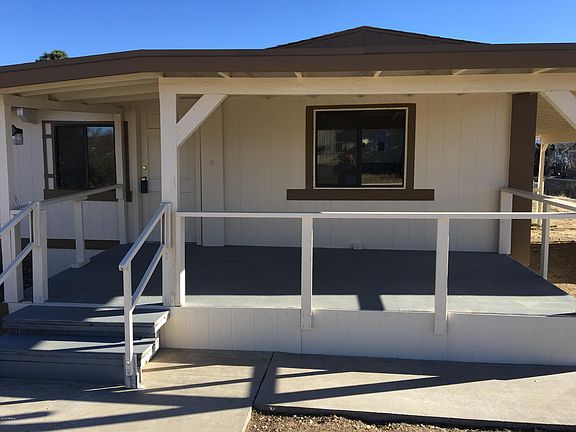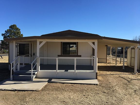 Wow! 1/2 acre in a great area for only $80,000! This manufactured home has 2 bedrooms, one bathroom, two bonus rooms, covered parking, covered patio, large storage shed, and all the room you want to park your toys or build that shop. About an hour from 1-10 at Tonopah, about an hour from 303 at Grand, about an hour from I-17 and 74. 45 minutes from Prescott. 4 seasons and 20+ degrees cooler than the valley in the summer, minutes from dining and shopping. One mile to local elementary school, fire station around the corner, paved roads, enjoy quiet country living at a great price. FHA loan approved. New carpet throughout. Call agent for access