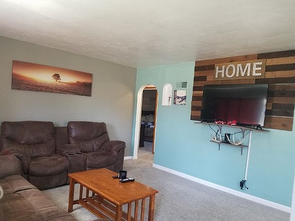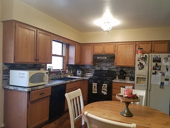 Charming updated 2 br home with attached garage. This home features an eat in kitchen, large living room, updated bath room with tiled shower. Family room has a built in bar which would make the perfect man cave. Large fenced yard with large deck, shed & dog run. Seller reserves the laundry room door. Dogs will be in the kennel. Roof to be replaced before closing.