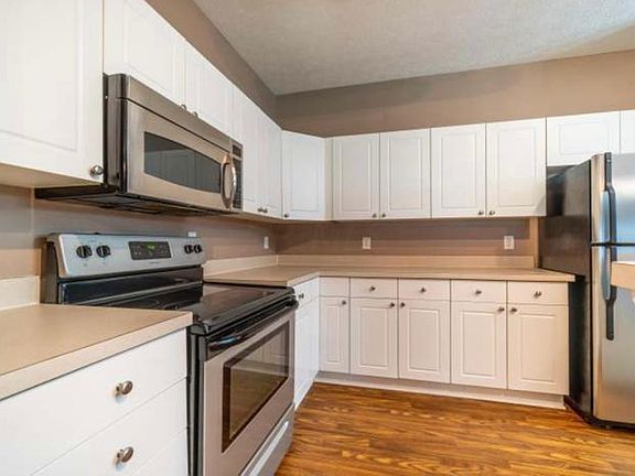 Fantastic first floor Ranch condo! Bright, clean & move-in ready. Open floor plan with large living room, kitchen with white cabinets & stainless steel appliances. This home has brand new carpet in the living room, dining room & bedroom. Generous sized Owner's Suite with en suite bathroom with tile shower & walk in closet. The second bedroom also is large in size & hall bathroom right next door. Covered patio & storage unit outside. Community pool and clubhouse included. Seller pas for Clubhouse, Swimming pool, gym and Trash