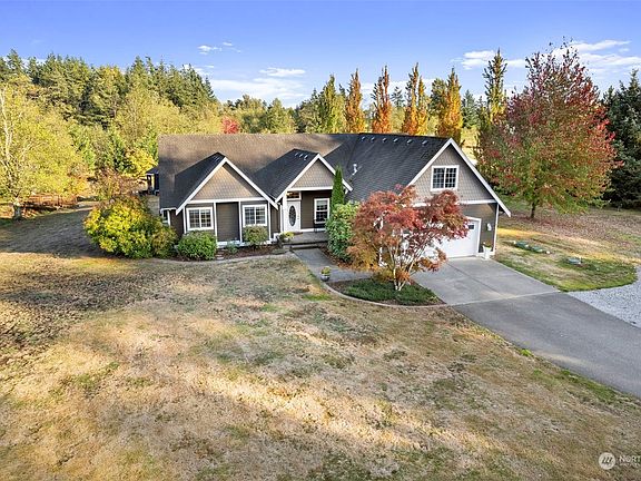 Discover your dream home tucked away on 5 private park-like acres in a very desirable area not far from town. Enjoy your seasonal creek and pick fruit from your very own apple, pear, and cherry tree. Blaine address, LYNDEN SCHOOL DISTRICT. 2600sf 3 bdr, 2.5bth, and den/office. Primary with en suite on main level. Two bonus rooms upstairs…. One currently used as a fourth bedroom. Spacious kitchen opens to dining room, stainless steel appliances, and pantry. Scraped, plank hardwood floors and slate entry. Great room boasts gas fireplace, high ceilings and many skylights…allowing for natural sunlight throughout. Beautiful territorial views, plus plenty of room to build a shop.