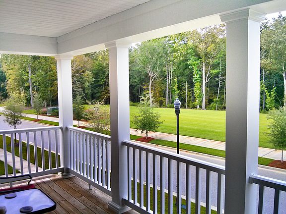 BETTER THAN NEW! You can't build this house with these options for this price. Add the fully fenced in back yard, custom deck and other owner-added upgrades and you'll realize that this home is priced to sell! This Santee Model Home offers Charleston style charm with double front porches on a premium lot overlooking a pond and green area that will remain undeveloped (no view of the neighbors here!). The current owner has also installed a custom deck and fenced in backyard, perfect for entertaining. Located in Creekside, the premier neighborhood in Carolina Bay with Cement Plank Siding, this popular Charleston style village is made of charming homes all painted in Historic Charleston Colors. The neighborhood amenities include two pools, a dog park, a crabbing/oyster dock, miles of walking/biking trails, several ponds and a neighborhood park located just a stone's throw away from the front door! This home features a large kitchen with upgraded cabinets, "soft close" drawers, granite counter tops, stainless steel appliances and hardwood flooring throughout. The spacious kitchen overlooks the family room and breakfast area. Your guests are greeted with a formal Dining Room with custom molding and Library with french doors as they enter in to the foyer. The second floor has a spacious Owner's suite that features a Luxurious Bath with separate tub and cultured marble shower with glass surround and a raised vanity with double sinks. The walk in closet is also very spacious. With hardwood floors, cherry cabinets, tiled bathrooms and laundry, covered patio, upgraded light fixtures, ceiling fans throughout and more, this home has it all.