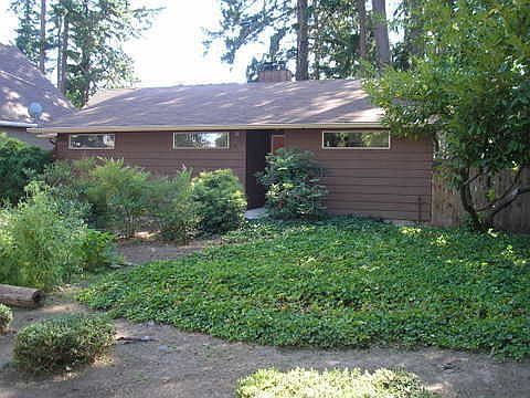 Two Bedrooms + Bonus Room!! Unique floor plan allows for 2nd bed/bath to be a separate suite. Home needs updating, but has great potential. Beautiful backyard with deck, flagstones, and evergreens is a highlight of this .32 acre lot. Partially finished, 460 sq ft bonus room on cement slab is included in total.