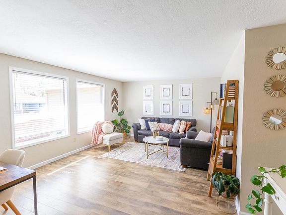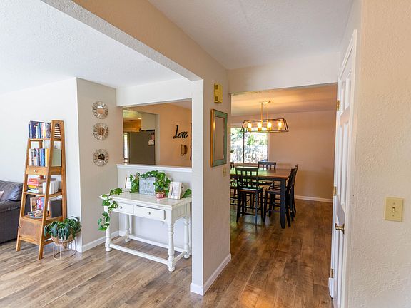 Charming East Medford in a highly desirable neighborhood. Located close to Lone Pine Elementary and North Medford High School. Great curb appeal with a small courtyard at the entrance with plenty of room for a sitting area. Spacious home with two large living spaces and formal dining room. Plenty of natural light in the front living room that has large picture windows with views of the courtyard. The kitchen opens to the family room that has a fireplace and views of the beautiful backyard. The kitchen has granite counters and breakfast nook. The owners have put in all new laminate wood flooring throughout. The guest bath has been updated with 2 above counter sinks and tile flooring and new fixtures and mirrors. The primary suite has walk in closet and a dual vanity full bath. The additional bedrooms are good sized. The backyard has been completely redone and is ideal for entertaining with a covered patio and large grass area. It is a must see!