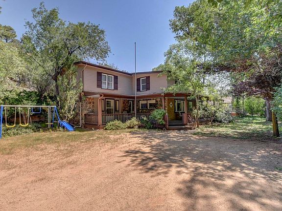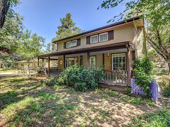 As nostalgic as it gets!! Drive across the bridge and the seasonal creek to the perfect home setting. Nestled against the boulders and mature trees as a back drop with the long covered front porch and historic charm of the 40's. With the 1940's homes come the beautiful accents of rock and wood. This is perfect for the family that wants to add their own upgrades and touches. The home has a living room and private family room with two accesses from the upstairs. Great for children or a master bedroom getaway. Large 3 car garage was built in the 90s and adds that extra something not commonly found in the downtown locations. What an amazing opportunity! Homes is being offered ''as is'' with no repairs. Property has a well but pump is not active. Home is on city water.