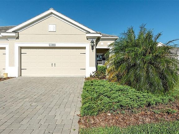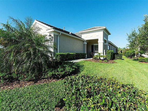 Sunshine, blue skies, and the perfect home in a gated "maintenance free" neighborhood with no CDD fees is waiting for you. The property features a freshly painted interior and new carpet in both bedrooms. This Tidewater model paired villa offers over 1500 square feet of living space with a Great Room floor plan. The Great Room features a tray ceiling with crown molding, Bahama fan, and sliding glass doors leading to the partially covered and fully screened lanai. Classic kitchen upgrades include granite countertops, subway tile backsplash, rich Boudreaux Cherry cabinets with crown molding and easy to access pots and pans drawers, a serving counter with sink and gooseneck faucet, stainless- steel appliances and gas range. Kitchen and Great Room have wonderful 18" tile flooring for easy cleaning. The master suite has a bath with a large walk- in shower and dual vanities with sinks. The secondary bath has a tub/shower combination. The den has engineered wood floor and a double French door entry. All windows are outfitted with blinds. Amenities include a community pool with umbrellas and lounge chairs, a spa, outdoor cooking area, a tennis court, 2 dog parks and a playground. The location is exceptional, within minutes to I-75, Lakewood Ranch shopping, dining and entertainment and A rated schools. If you prefer boating, fishing or watching the sunset over the Gulf of Mexico, Anna Maria Island and the beaches are nearby. Enjoy the convenience of major medical facilities and airports.