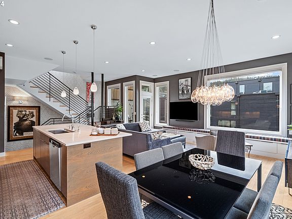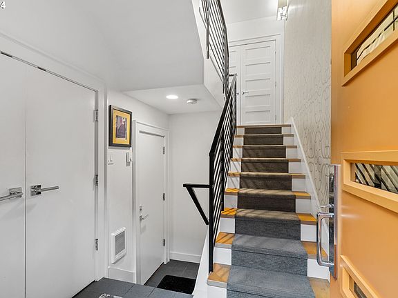 Exquisite remodeled luxury modern townhouse in the attractive Northwest District of Portland. Offering abundant natural light, this home is impeccably maintained and filled with desirable features. The open great room floor plan creates a welcoming atmosphere, perfect for gatherings or relaxation. The kitchen features quartz countertops, under-cabinet lighting, a gas range, a filtered cold and instant hot water dispenser, and a large island with bar seating. The living room includes built-in seating with extra storage and is wired for surround sound, offering a comfortable space for entertainment. The primary bedroom offers beautiful west facing views both from the interior and the private balcony. The primary bathroom features a floating vanity with quartz countertop and under-cabinet lighting, Suntouch heated floors, a heated towel rack, dual shower heads with a rain head, and in-ceiling speakers. With double balconies and large windows, natural light fills the entire home. Two Murphy beds are included for additional convenience. Storage is plentiful, and a new electrical panel ensures safety and reliability. Entire home water pressure is assisted with a water pump located in the garage. This townhouse offers a rare 2 car side-by-side garage, providing flexibility and extra storage. Well-maintained 10-unit community, residents can enjoy the private, large courtyard garden. Less than a half mile from Lower Macleay Park and Forest Park access. Less than a mile from NW 23rd, New Seasons, and numerous restaurants, pubs, and coffee shops. Don't miss the chance to make this exceptional NW Portland townhouse your own! [Home Energy Score = 4. HES Report at https://rpt.greenbuildingregistry.com/hes/OR10192722]