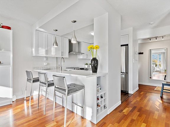The perfect place to call home WEST OF DENMAN! Don't miss out on this rare opportunity to own a beautifully renovated 2-bdrm, 2-bath corner-unit in one of the West End's best maintained buildings. Sunlight flows through the living area onto the balcony, where you can enjoy partial views of English Bay. Upgrades incl. full kitchen reno, new flooring in both bedrooms, and more. With only 4 homes per floor, this rain-screened & re-piped building is perfect for residents who take pride in ownership and enjoy a sense of community. Benefits incl. in-suite laundry, fitness centre & sauna, plus beautifully manicured gardens and a well-kept lobby to welcome you home. Restaurants, cafes, the beach, Stanley Park, shopping and more, all steps away - everything you deserve, right where you want to be.