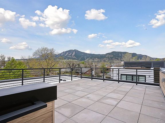 Welcome to a stunning townhome on Pearl Street in Boulder, offering a perfect blend of modern luxury and convenience. This 4-bedroom, 4-bathroom residence spans three levels, showcasing meticulous craftsmanship and thoughtful design throughout.As you enter, you're greeted by 8-inch clear matte center cut white oak floors and a striking modern architectural staircase with floating butcher block treads. The open-concept living space flows seamlessly, featuring a gourmet kitchen with a quartz waterfall countertop, high-end Carbon Decor Dual Fuel appliances, and ample shelving for storage.The main level also includes a powder room with Textured Belgian Terracotta Star and Cross Tile, as well as a dedicated mudroom area for added convenience.Upstairs, the primary bedroom suite boasts breathtaking views of the Flatirons and a luxurious master bath with Weathered White Zellige chevron tile and gold plumbing fixtures. Two additional bedrooms share a stylish secondary bath with penny tile accents and a gold orb pendant.The highlight of the home is the third-story sky room, complete with a wet bar, beverage station, and full bath. A retractable glass wall seamlessly connects indoor and outdoor living spaces, offering endless entertainment possibilities.Outside, two-tiered decks provide panoramic views of Boulder's landmarks, including the Flatirons, Sanitas, and Devils Thumb.Conveniently located near the Pearl Street Mall, residents have access to artisan shopping and world-class dining, as well as hiking and biking trails. Supermarkets and retail outlets are also nearby for everyday needs.In summary, this townhome offers a luxurious lifestyle in one of Boulder's most coveted neighborhoods, combining elegance, functionality, and breathtaking views.